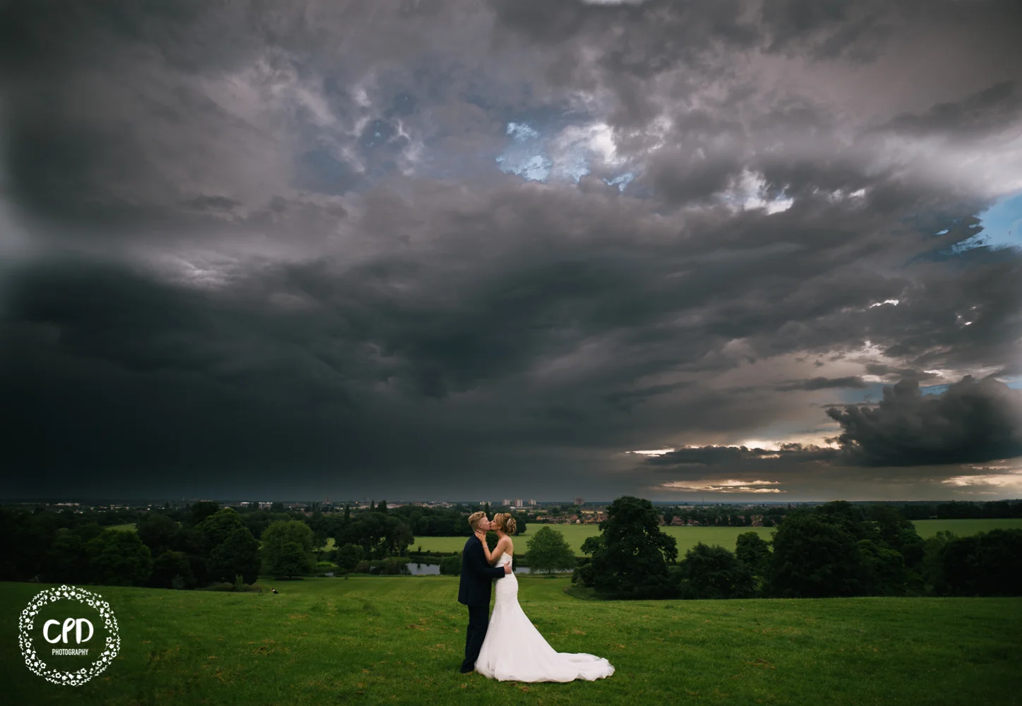 Thankfully the rain that poured down during the reception and speeches cleared away, just long enough for us to pop outside for some romantic photo's.. As you can see from the very dramatic sky it did not last long..