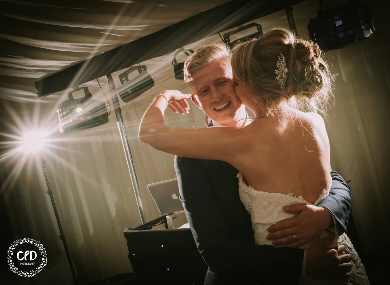 Carly and Adam are movie fanatics and based the theme of their wedding on this, table names were names of their favourite films. They even had a light box next to the wedding cake with the words 'Cakes on a Plane' illuminated.